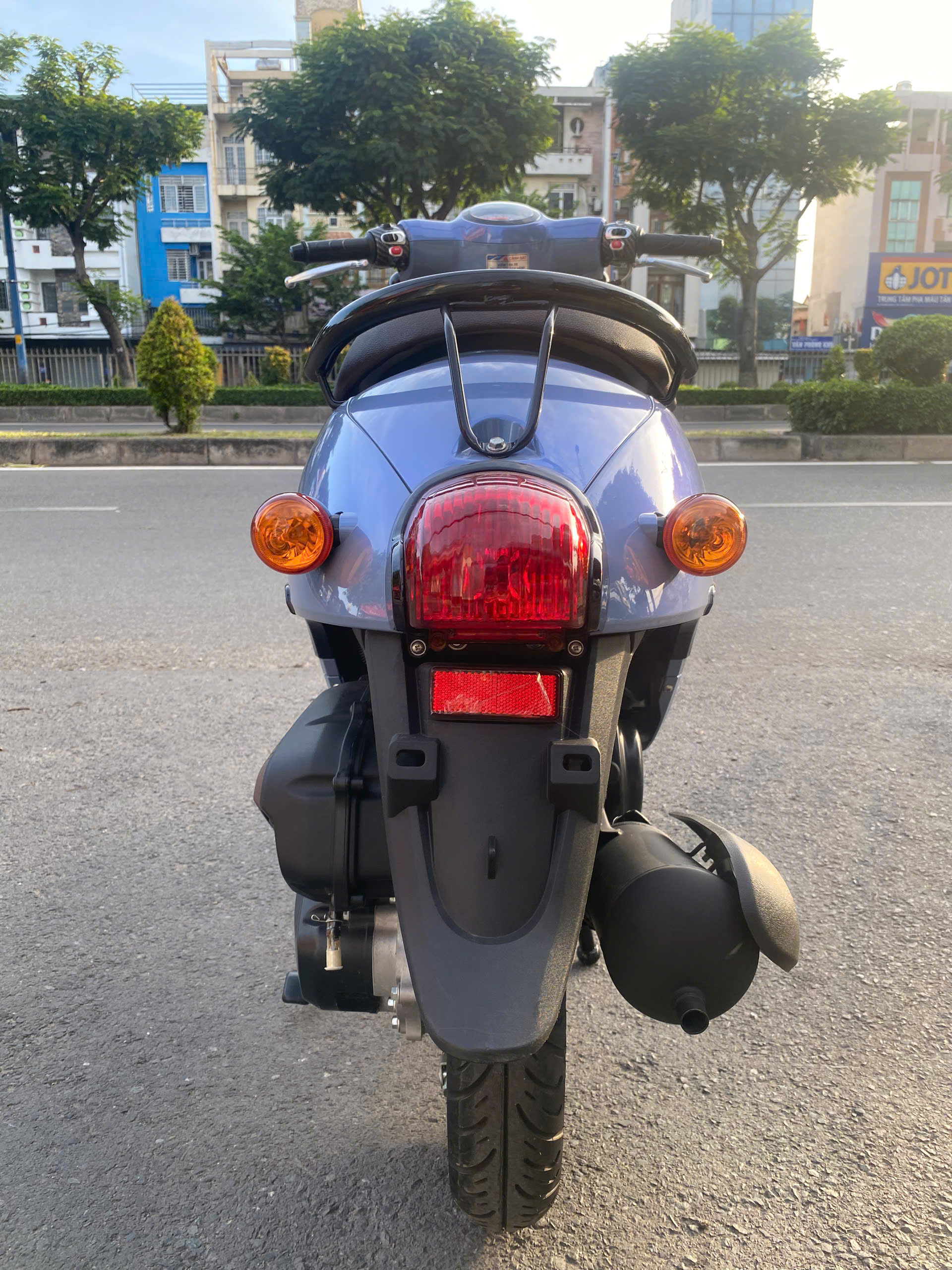 Phần đầu xe là điểm nhấn dễ nhận thấy nhất với cụm đèn pha tròn kích thước lớn, sử dụng công nghệ LED hiện đại. Viền crom sáng bóng bao quanh không chỉ làm tăng tính thẩm mỹ mà còn tạo cảm giác cao cấp, giúp xe nổi bật hơn khi di chuyển trên phố đông. Đèn xi-nhan được bố trí gọn gàng, hài hòa với tổng thể, vừa đảm bảo an toàn khi vận hành vừa giữ được sự liền mạch trong thiết kế.