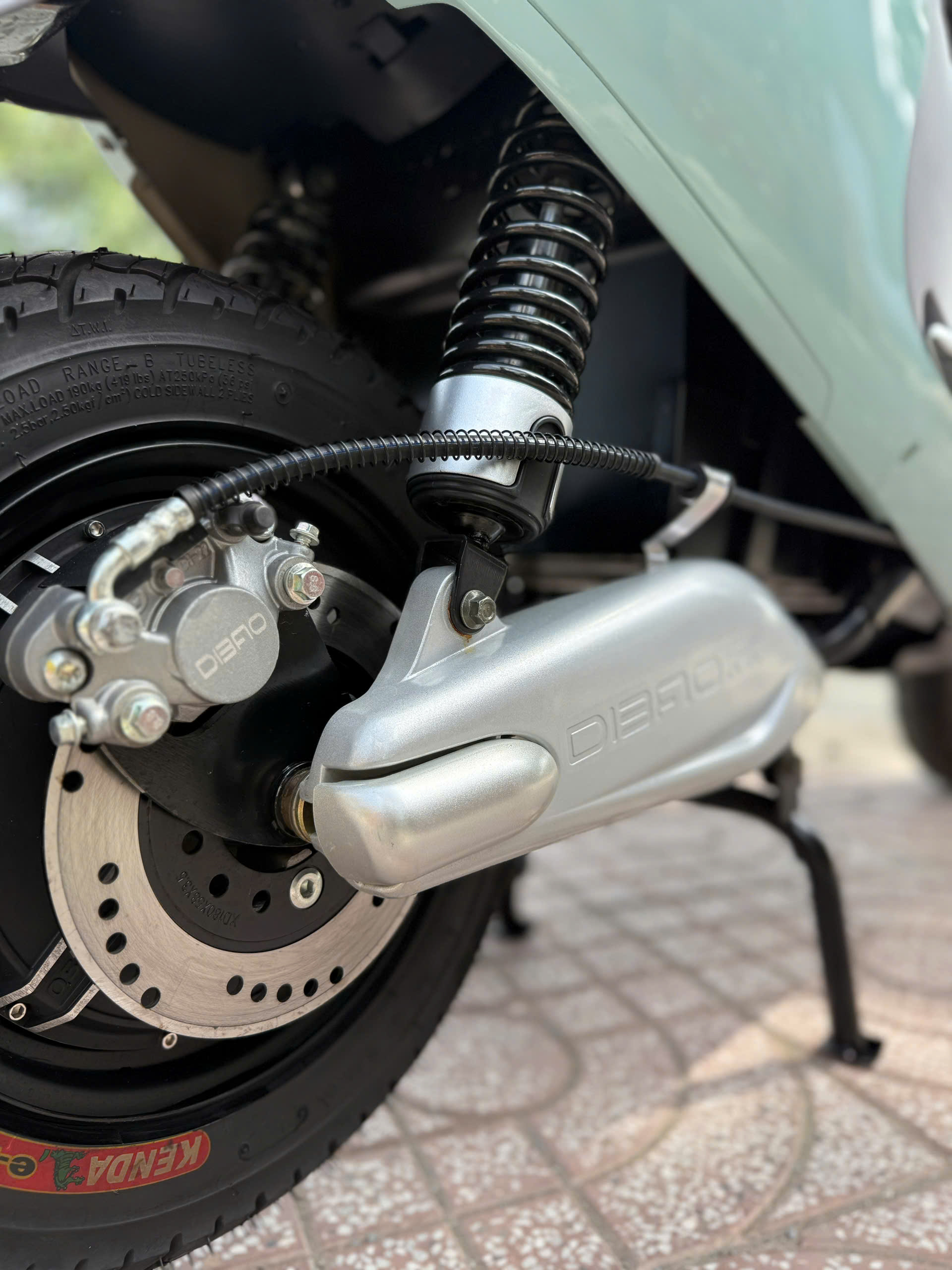 Xe được trang bị phanh đĩa ở cả bánh trước và bánh sau, giúp khả năng kiểm soát tốc độ tốt hơn so với phanh cơ truyền thống. Phanh đĩa mang lại phản hồi nhanh, lực phanh ổn định, hỗ trợ người lái xử lý tốt trong các tình huống cần giảm tốc hoặc dừng xe đột ngột.