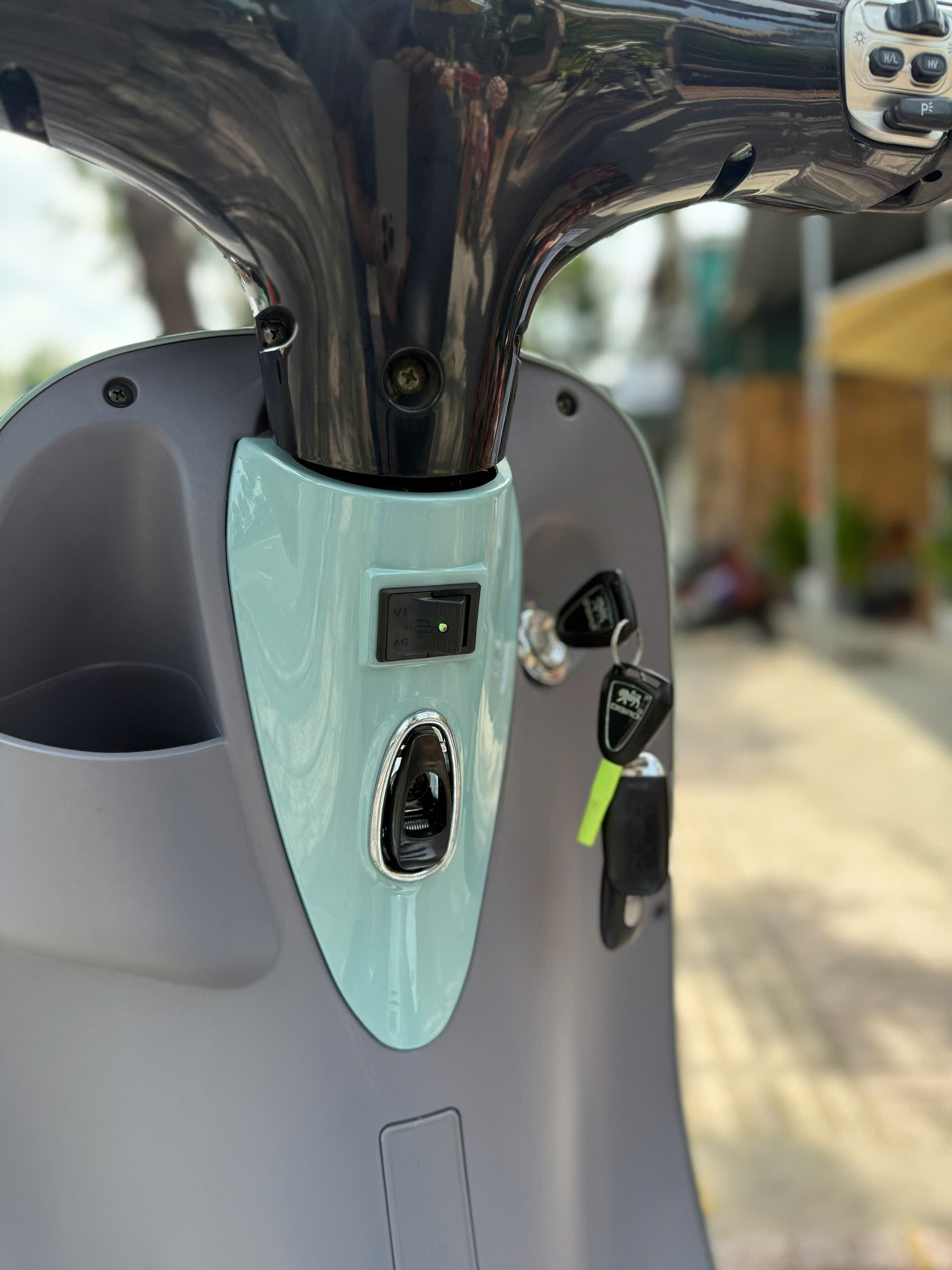 Chiều cao yên xe ở mức khoảng 755mm, phù hợp với thể trạng của đa số người Việt. Ngay cả những người có chiều cao khiêm tốn cũng có thể chống chân thoải mái, tạo cảm giác tự tin khi dừng đèn đỏ hoặc di chuyển trong không gian hẹp. Đây là một điểm cộng lớn, đặc biệt với học sinh, sinh viên hoặc người mới làm quen với xe máy điện.