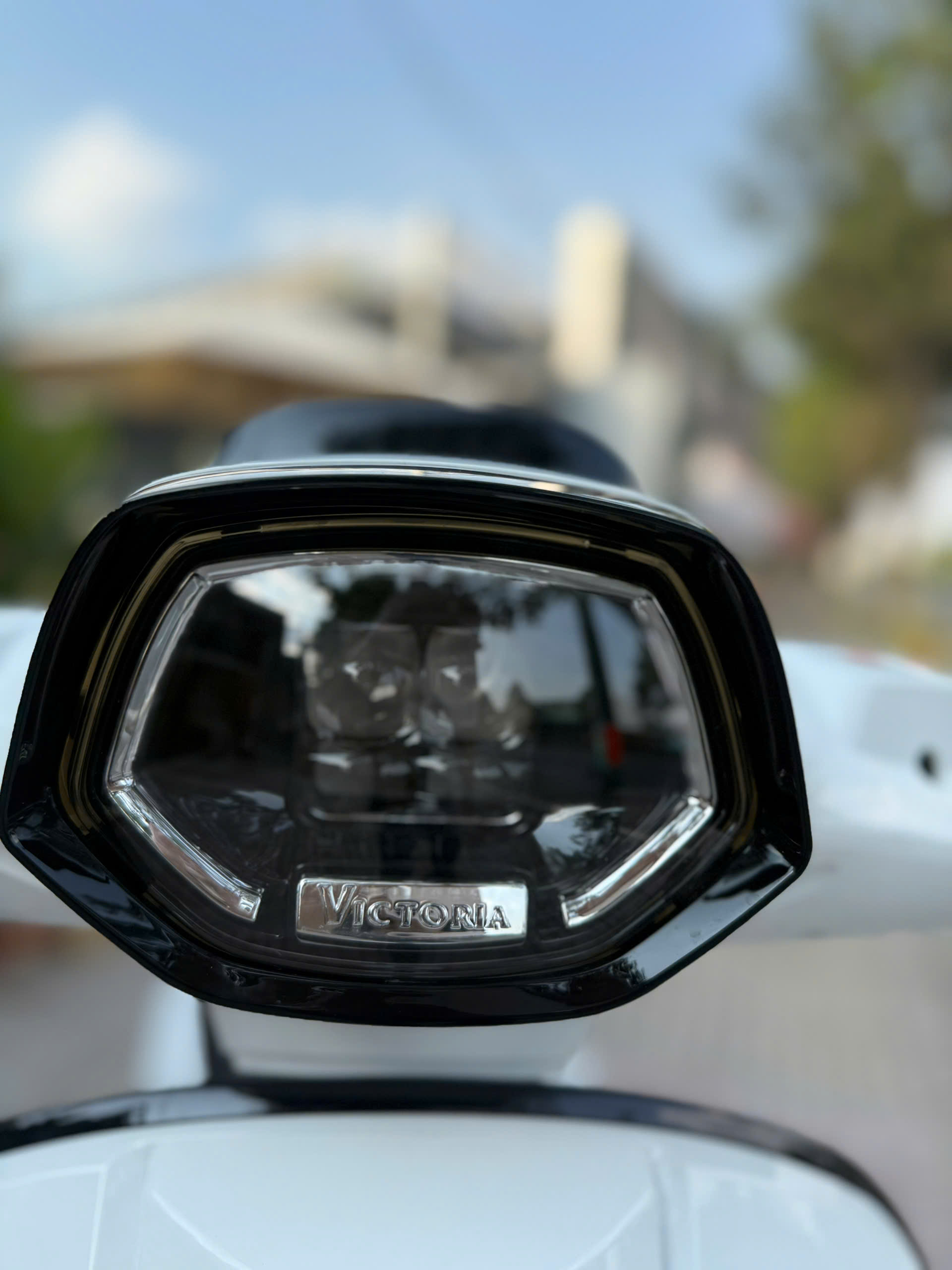 Đi cùng thiết kế tổng thể, cụm đèn LED của Victoria V38 là một điểm nhấn đáng kể. Đèn pha LED chiếu sáng rõ ràng, góc sáng rộng, tiết kiệm điện và tăng tính an toàn khi di chuyển ban đêm. Dải đèn định vị chạy quanh mặt nạ trước tạo cảm giác sang trọng và thu hút hơn. Đèn hậu LED ở phía sau cũng thiết kế gọn, sắc nét giúp người đi phía sau dễ quan sát. Cụm xi-nhan LED sáng mạnh nhưng không gây chói, đảm bảo hiệu quả trong mọi điều kiện ánh sáng.